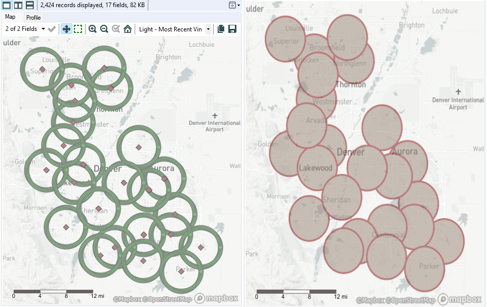 The last tool isn't necessarily essential, but it's close enough to it that I've included a brief discussion. The Find Nearest tool works similarly to Spatial Match, in that there's a target and a universe. A major difference is that it will only output a certain number of the closest points, and it's configured to accept only a maximum distance. A unique feature of Alteryx is that you can do market analysis with an optional Spatial Data license add-on. This allows you to incorporate TomTom drive time data to find points that are further away in space, but require less time. Because you'll only have access to that option if you get a reasonably rare and expensive license, that's all I'll cover, but there is some existing reading on the topic.