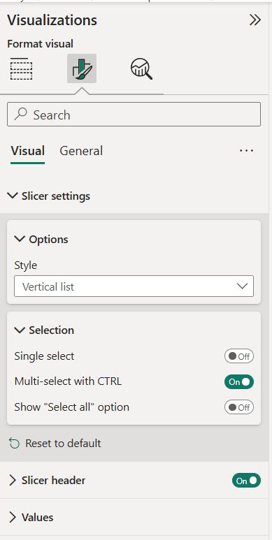 Select the field you want to filter by and the slicer will immediately apply to visuals on the page. Slicers can also be formatted to allow single selections, multiple selections, or a search box depending on how you want users to explore the data.