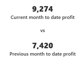 Date comparison KPIs are a great way to show increase/decrease in performance overtime in a quick concise manner. These KPI's could be used alongside a line chart to give a summary of growth between two dates. For example, you might have a line chart showing the trend in profit from sales over 5 years, but you only want to see the difference between the profit made between last month and now, and the start of the month and this time last month (i.e 1st September --> 23rd September and 1st August – > 23rd August). This situation will require a Month-To-Date (MTD) calculations.
