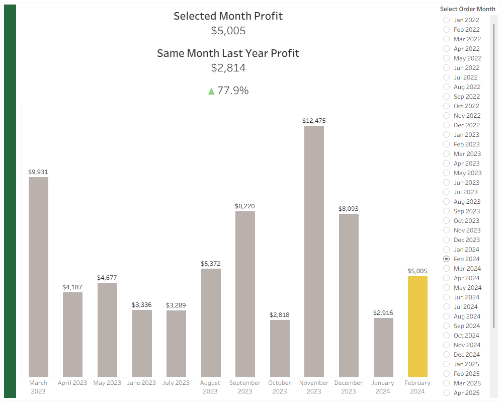 - Calculate the selected month's profit.
