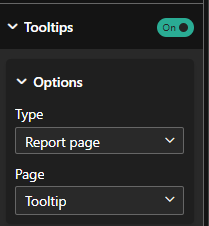 - On the page with the dumbbell chart, navigate back to the Format Visual tab, scroll to tooltips and select the page used to be the Tooltip page.