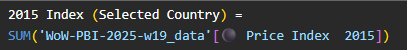 - For the tooltip, on a new page set the canvas background to the Tooltip size. For the values to adapt to each country when hovered over, new measures need to be created. For the Index Value for each year, the following measure is created for each.