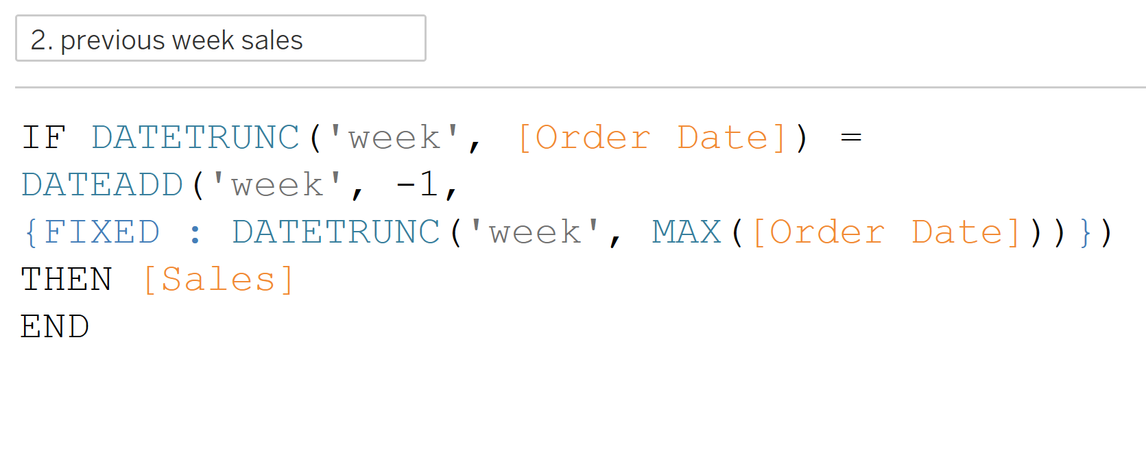 For the week-on-week difference, we don't need to wrap the current and previous week's orders in a SUM, as they're already aggregated.