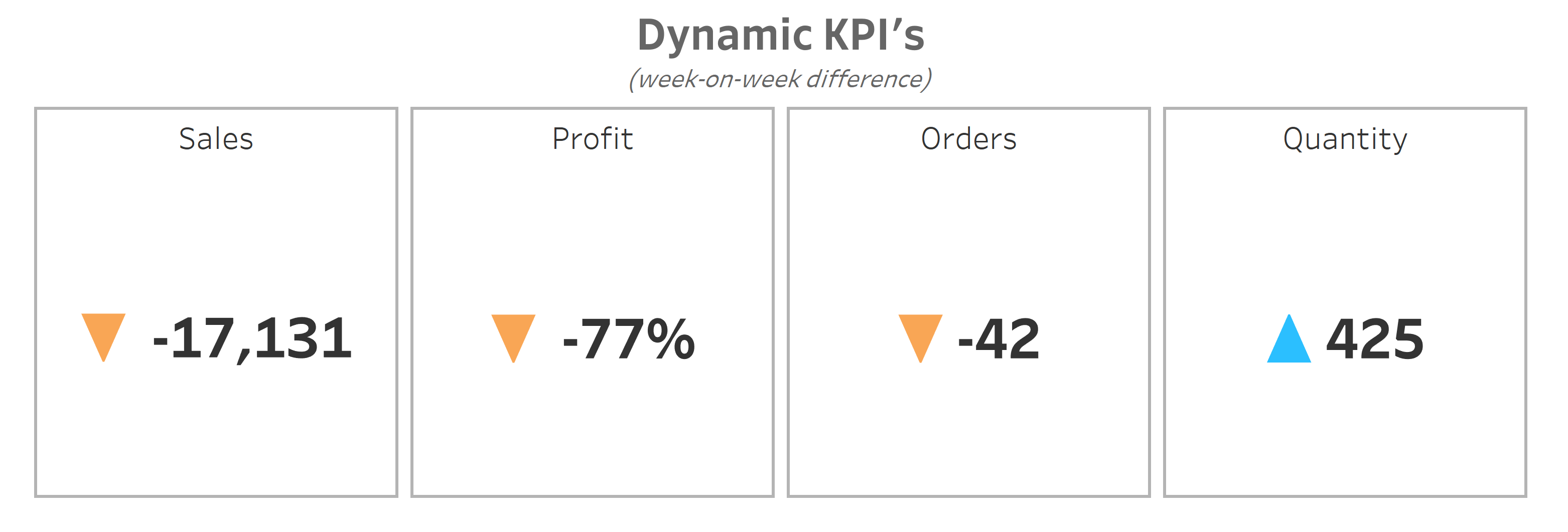 A good example is tracking sales on a week-on-week basis. Say you want to see if your sales this week are better than last week, a dynamic KPI makes that super easy.