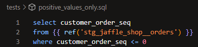 If the four provided tests aren't enough, you can create your own using Jinja in a SQL file in the tests folder of your repository. Here's an example of a test that asserts that there are only positive values in the given column: