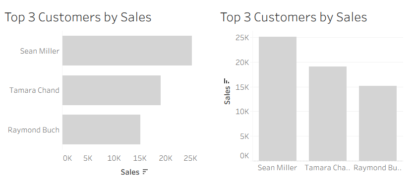 - Length allows the viewer to easily see the highest value.