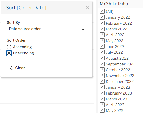 I recently wanted to be able to show the dates in a filter with the most recent dates at the top (sorted descending). Within a filter you can usually change the sort order by changing the default properts > sort. However, this does not work with date data types.