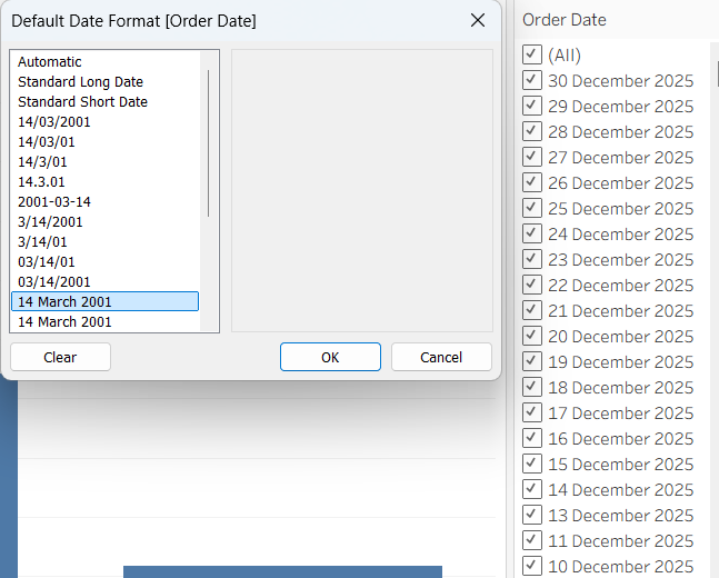 Then you can change the format of the date, go back to default properties and change the format - here I am going to show the day, month and year.