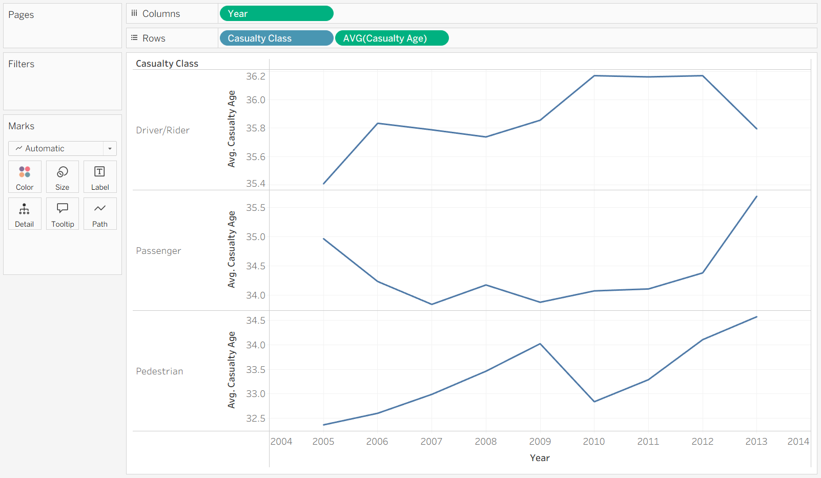 This time we're going to track how the Casualty Age has changed over time, separated by Casualty Class.