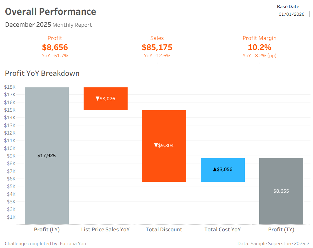 WHEN 3 THEN {FIXED : SUM([Profit PM LY])} + {FIXED : ([List Price PM YoY])} + (-1*{FIXED : ([Discount PM YoY])})
