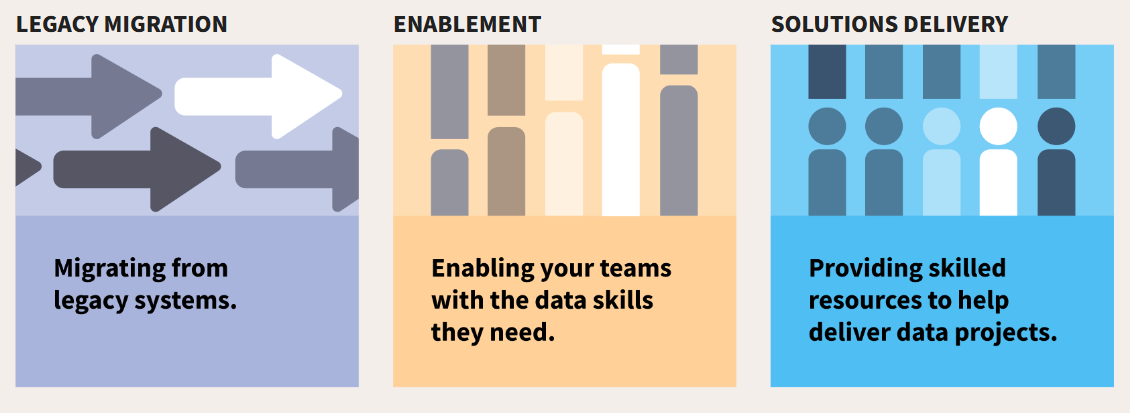 Next up: enablement. This typically involves assisting the client in bringing a new platform to the wider company. What this often means is teaching the company staff the basics on how to use a platform (e.g. Tableau) whether that be through intensive courses or setting up a data analytics community within the company to champion the platform from within. The consultant can also act as a port of call for any potential questions down the line.