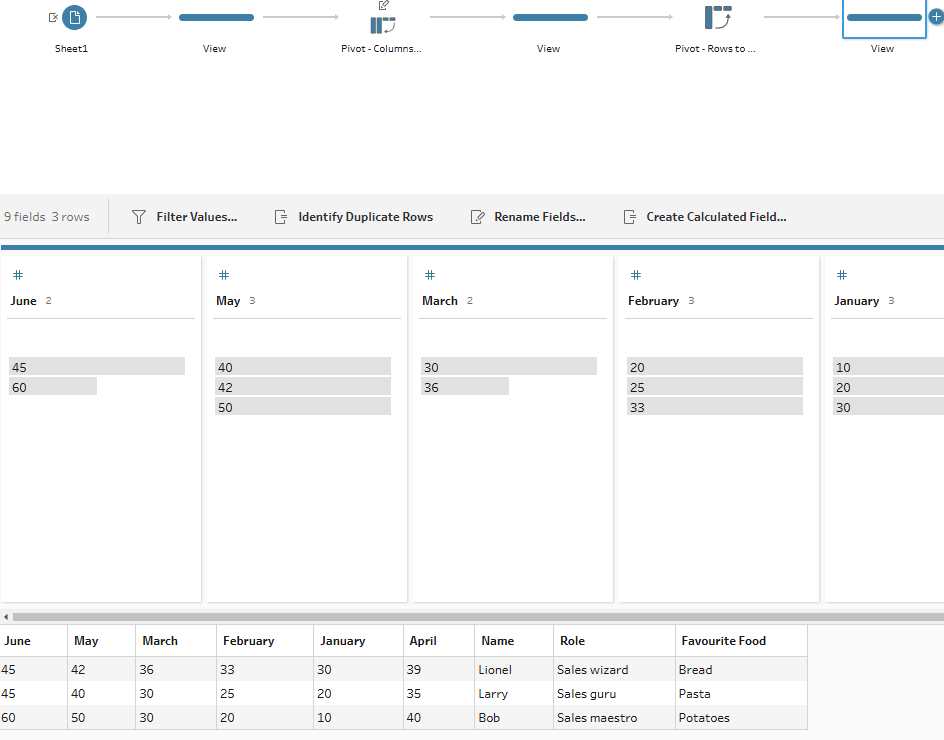 So that's how to pivot in Tableau Prep, both from columns to rows and rows to columns. Let's explore the differences now in Alteryx.