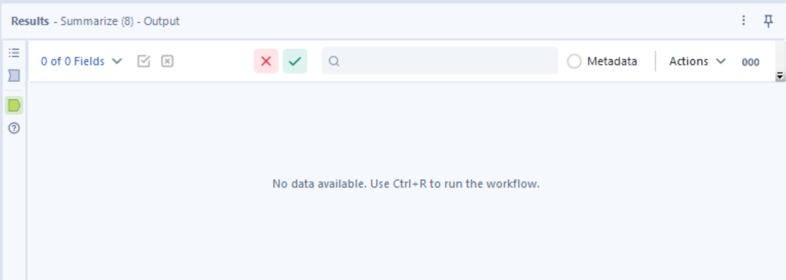 In Tableau Prep, every time an update is made to your data flow the entire thing is automatically ran and updated. For a software like alteryx, capable of handling massive datasets and running automation processes like API calls, automatic run-throughs are not as feasible. Instead, the responsibility is placed on the user. I became very familiar with the screen below, as well as the CTRL + R command to make sure that I was always viewing a completed version of the flow I just built.