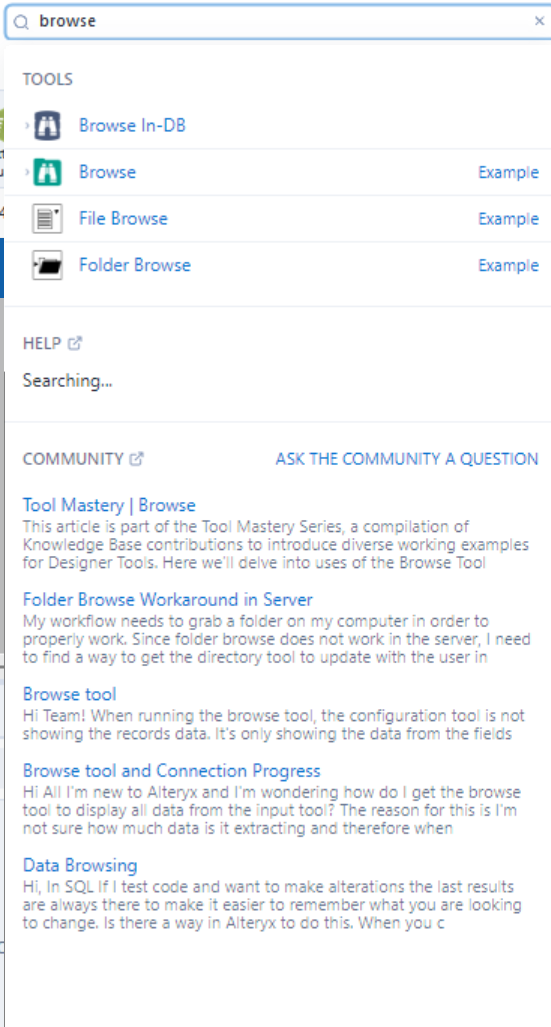 The Alteryx community is robust and has a lot of documentation available. Links to the community pop up whenever you search something (building on my previous tip). You can also find the community at https://community.alteryx.com/. A great way to practice your Alteryx skills is by participating in the Alteryx weekly challenges, of which there have now been 500. You can find them here, and once you've solved one (or many!) you can post your solution onto the forum and see other users' solutions to the challenges. It is a great way to hone your skills, expand the list of tools you're familiar with, and practice problem-solving using Alteryx.
