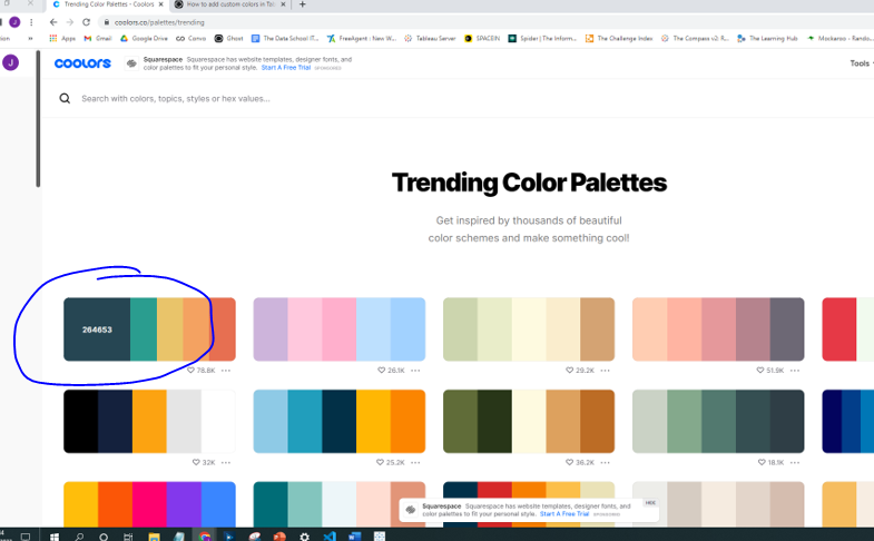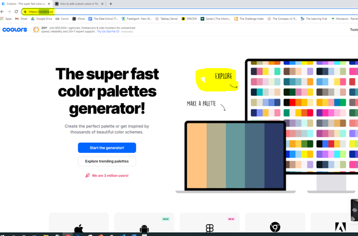 Go to the coolors website to select Explore to bring you through to the color palette page: