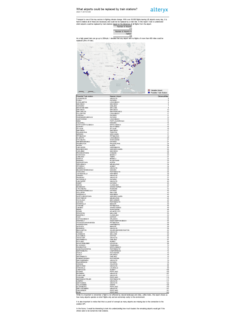 My aim was to show which airports have only preferred routes under a certain distance, showing these airports could be removed and replaced by train stations for a more environmentally friendly world.