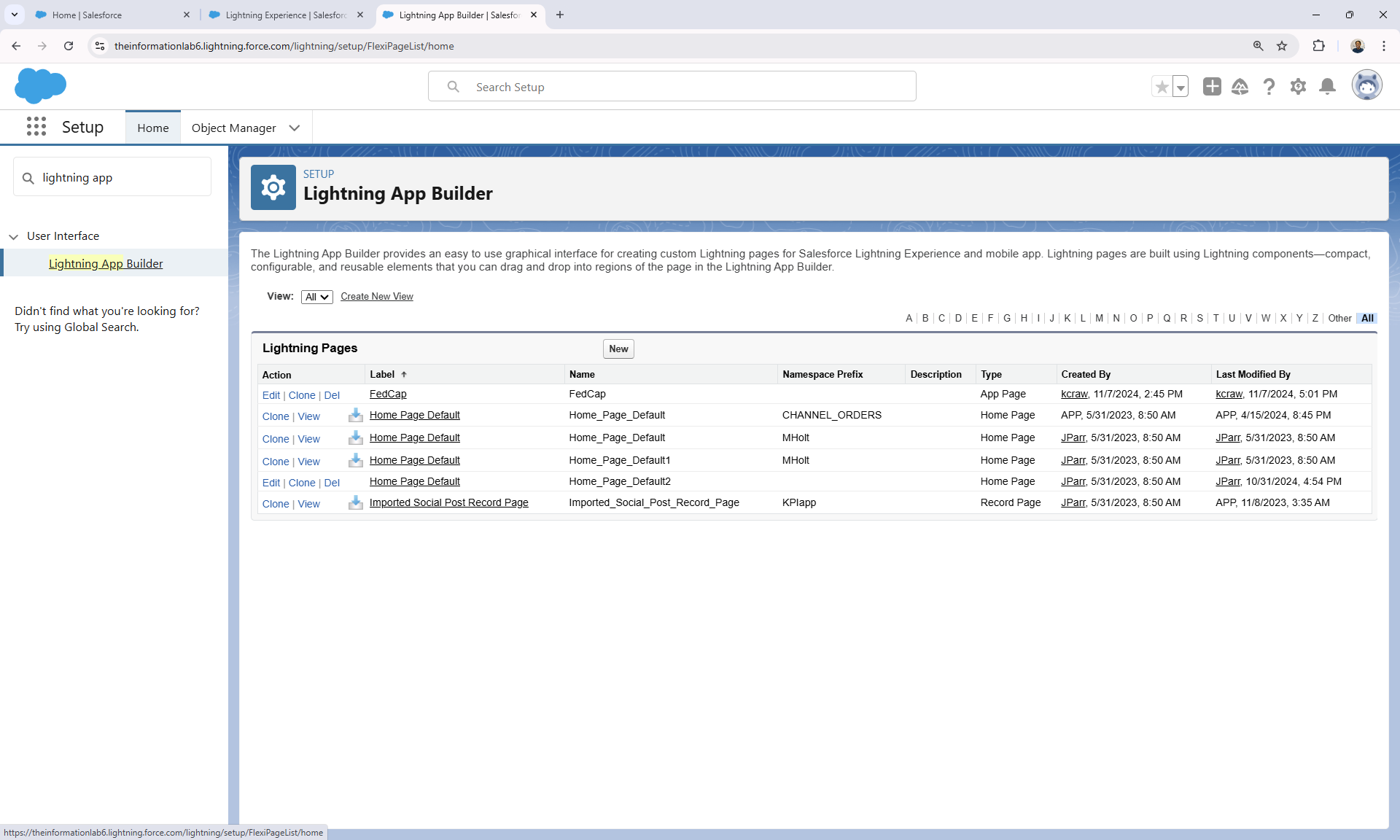- Go to Setup and search for Lightning App Builder from Quick Find.