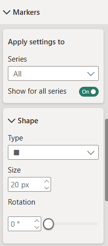 In the visual pane we will turn markers on and select a shape of choice for each rank marker: