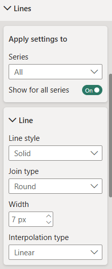 To construct the chart we will select the Line Chart visual in the visualisations pane:
