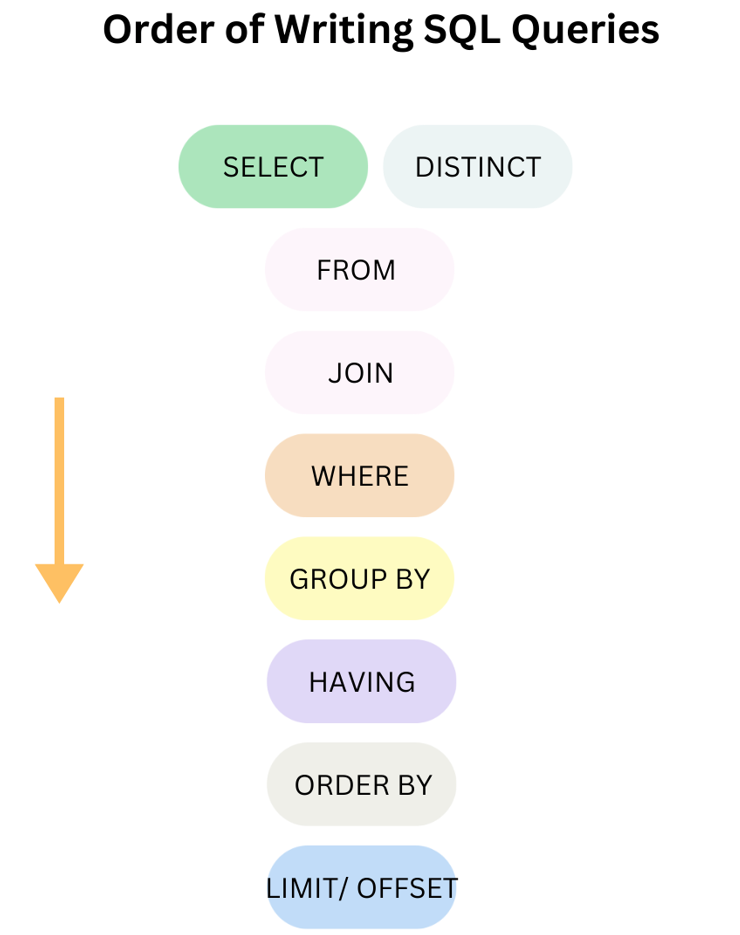 When writing a SQL query, we usually follow this order from the top to the bottom: