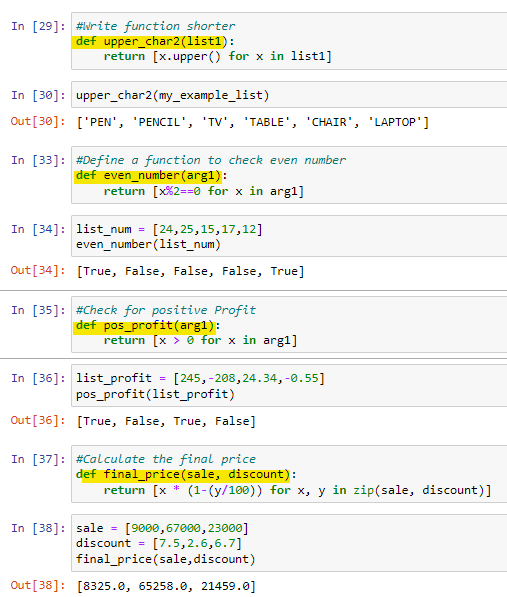 -In the code above, I defined a function called upper_char and passed the list1 argument in (you can name whatever you like but avoid putting the name the same as the Python keyword in green color).