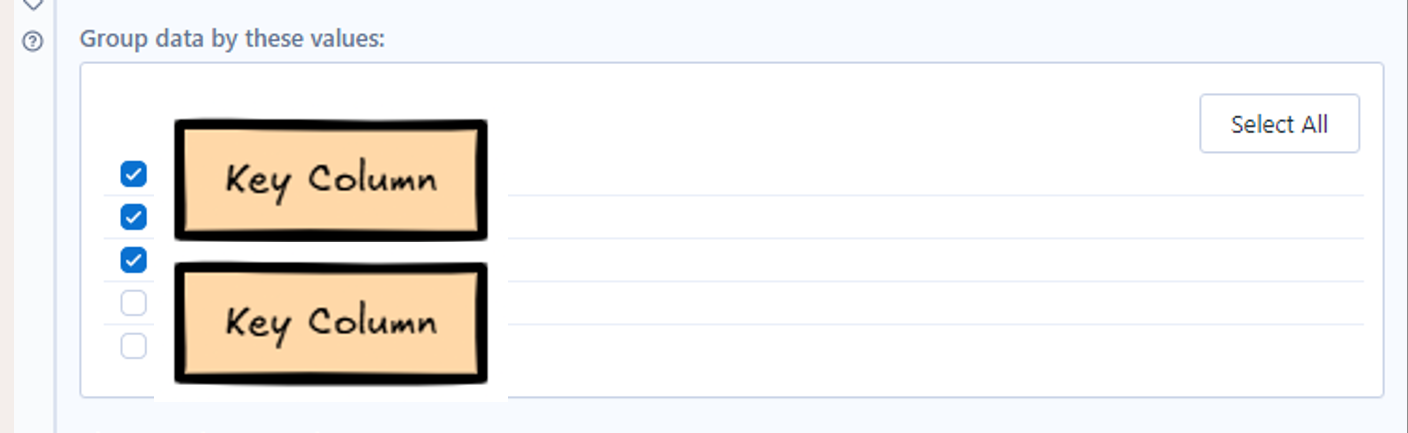 We can select a field here to group by. It tells Alteryx which rows should stay apart when dumping the data points into the newly created column.