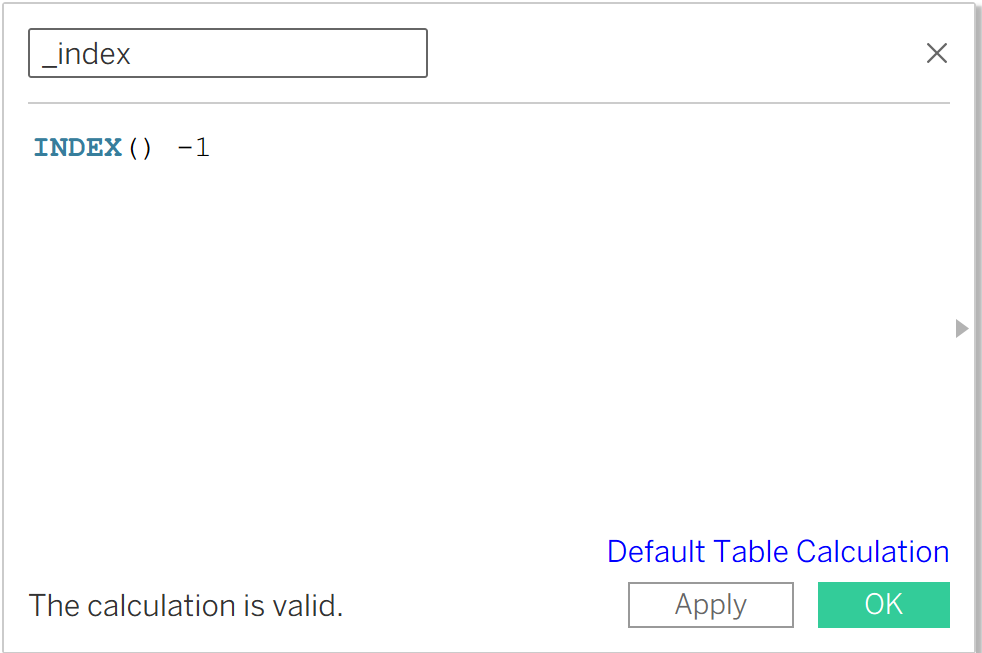 The first one will be _index. Below you can see the screenshot. In this case, we write INDEX() - 1, because we don’t want to start from 1, we want to start from 0.