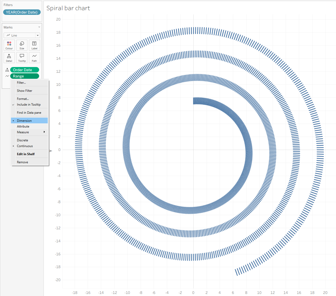Then we drag Range value to Path on the Marks card.