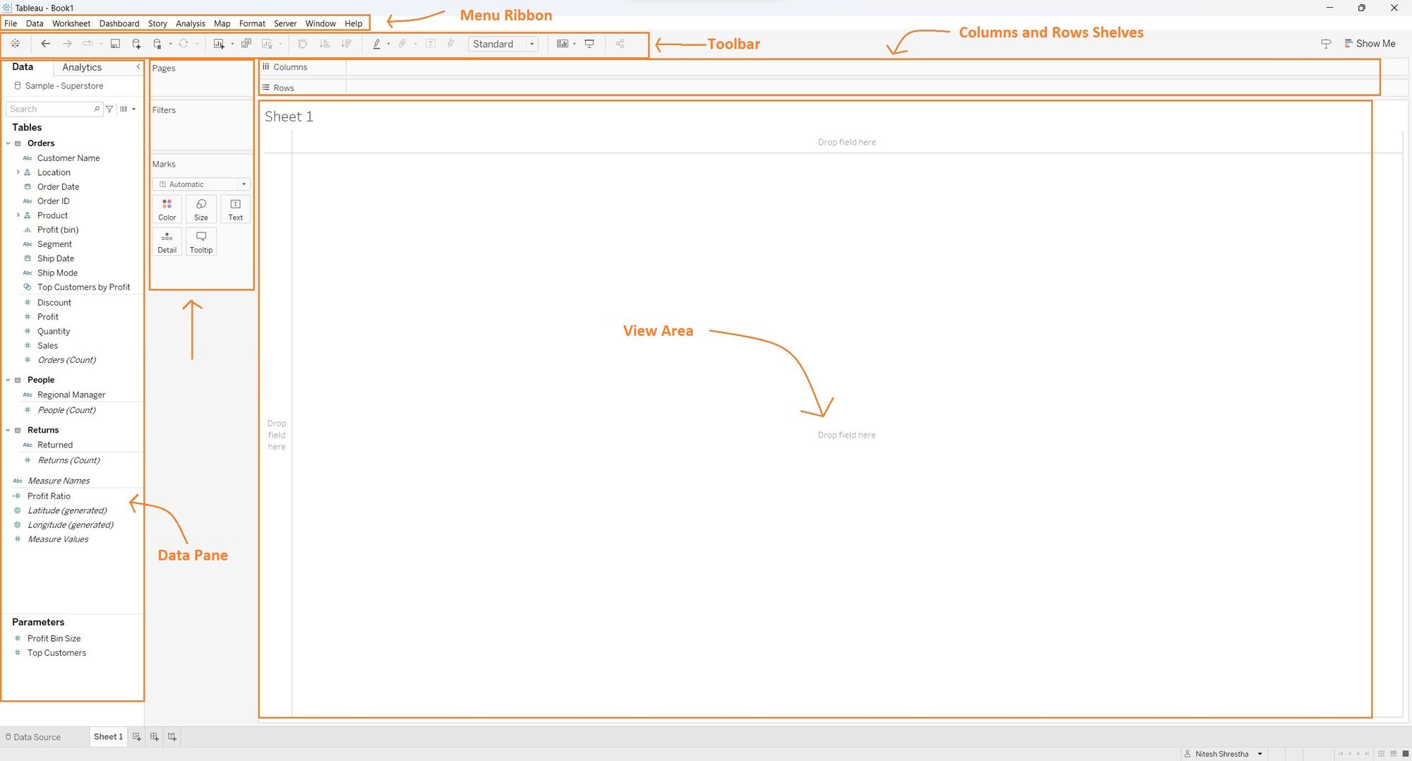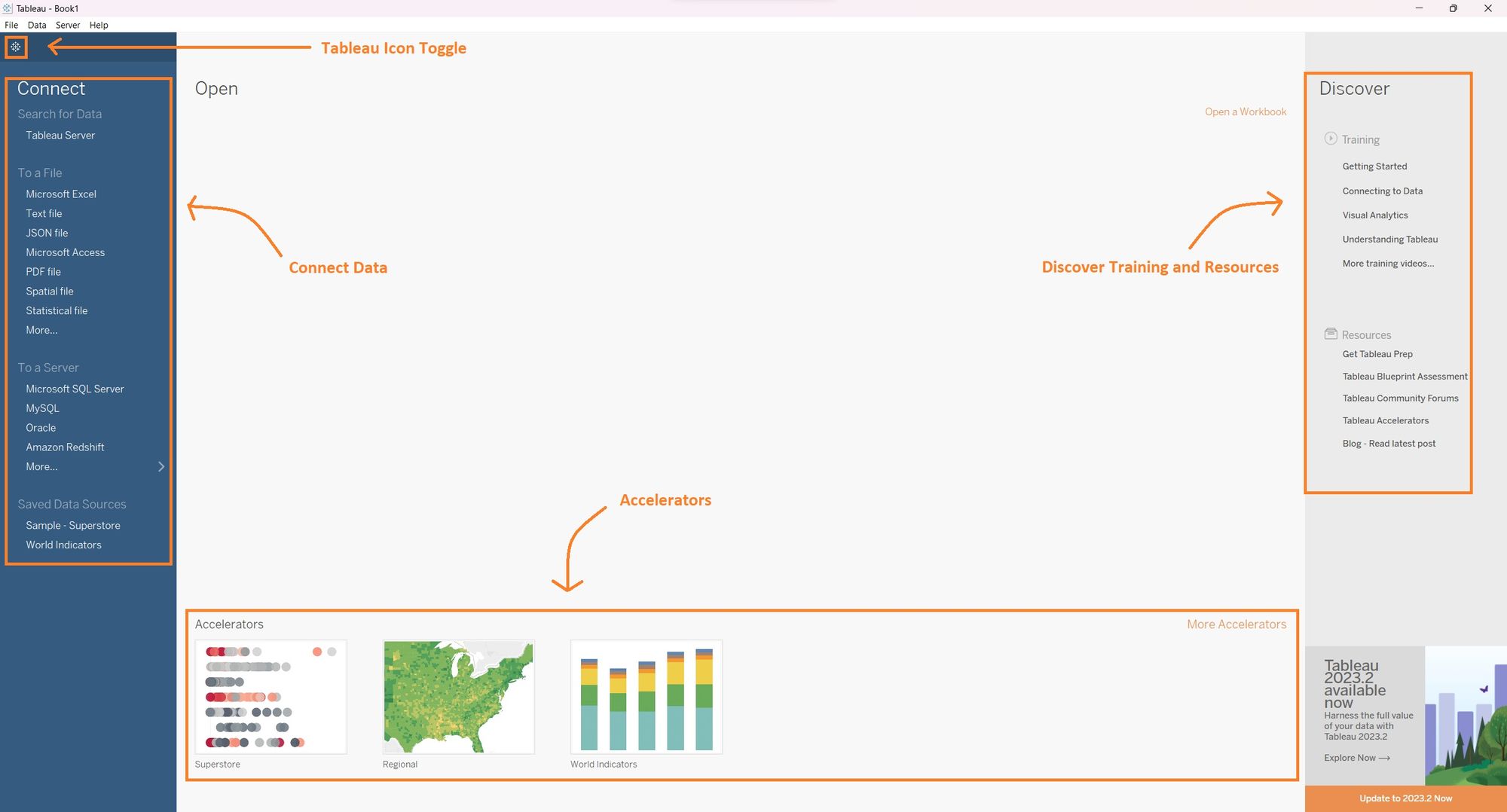 Tableau Desktop is an exceptionally powerful tool that enables us to create insightful visualizations and dashboards from complex datasets. During my second week of training at the data school, we delved into Tableau Desktop and gained hands-on experience in generating a wide range of meaningful charts and dashboards. The user interface of Tableau Desktop is designed to be straightforward and user-friendly, although beginners may require some time to familiarize themselves with it. In this blog post, I aim to provide a concise overview of the essential aspects of the Tableau Desktop user interface, offering valuable guidance to new users. It's important to note that the demonstrations presented here are based on the 2023.2 version of the application, which might exhibit slight variations compared to previous or forthcoming versions.
