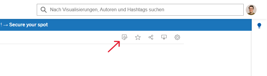 - 15 min: Formatting and Publishing to Tableau Public Finally, make sure to check your headlines, axis labels, and tooltips. Verify that the filters are correct and that your chosen colors guide the viewer’s eye. Upload your visualization in .twbx format and give it a self-explanatory title. If something goes wrong, you can make adjustments later directly on Tableau Public by clicking "Edit" in the top menu (see next image).