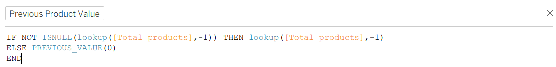 Similar to the sales previous product calculation, this carries the running count of the previous boundary down to the current boundary.