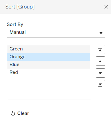 - Manual Sort: The groups may appear in alphabetical order (e.g. Blue first). Manually drag the rows in the view to arrange them in the correct Glenday order: Green, Orange, Blue, Red.