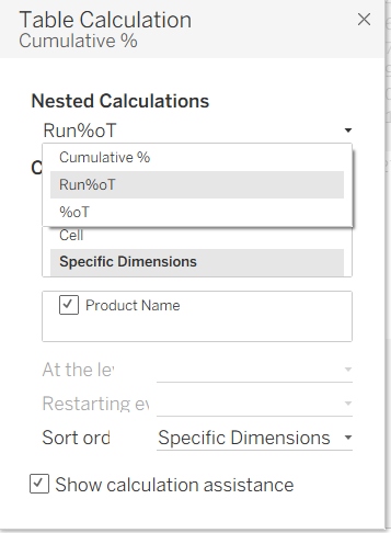 - Then click on Edit Table Calculation and make sure every Nested Calculation (e.g.