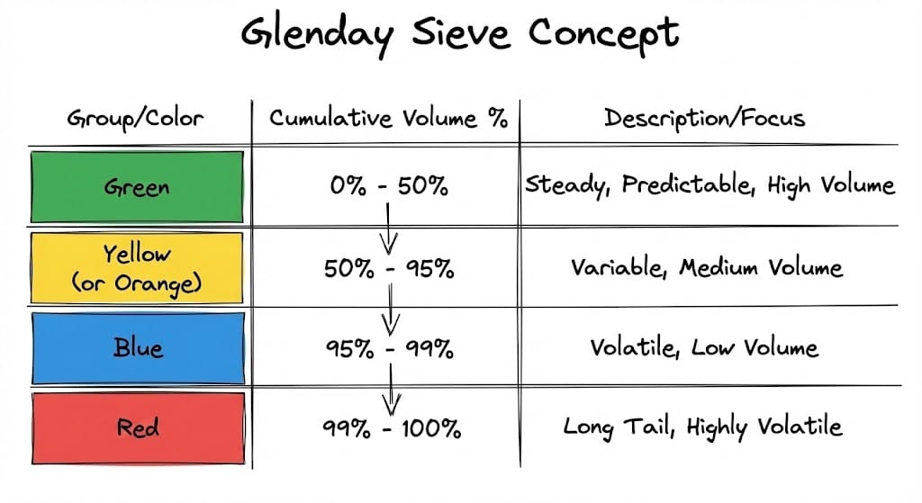 This blog outlines a method to solve this using a logic of identifying boundaries. We will use a Glenday Sieve analysis as the example, but this logic could be applied to any Pareto, ABC Analysis or dynamic grouping scenario.