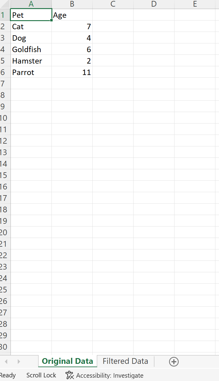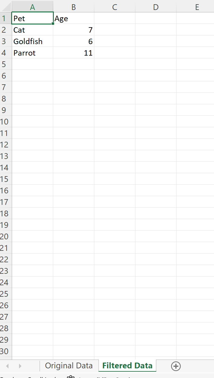 Next I have created two outputs and named the sheets in excel accordingly. The first as 'Original Data' and second 'Filtered Data' and constructed the following workflow: