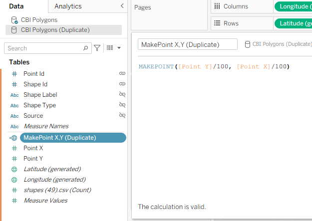 • Recreate the MAKEPOINT() calculation