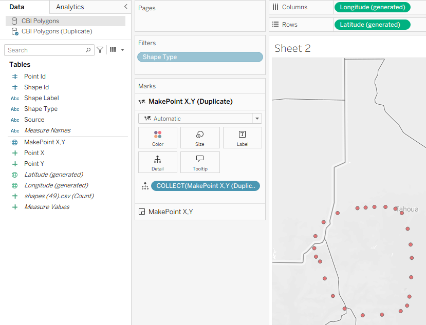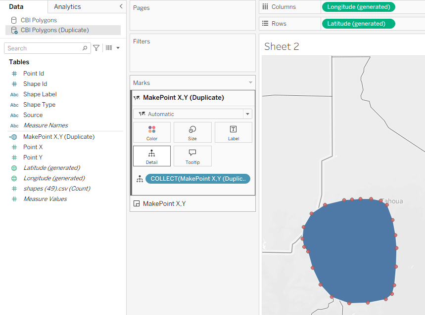 Step 3 : Export the coordinates as a CSV and bring it into Tableau