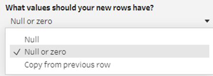 We select the field we would like to use and can set the minimum start or end value. We can alter the increments of the new rows to either months or days. The values within our new rows can be null/ zero or copy from the previous row.