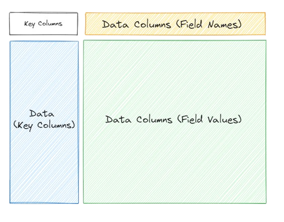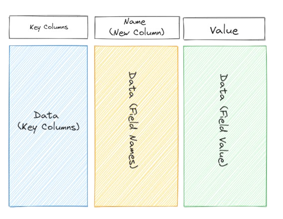 The Key columns stay unchanged, but data that was once headers transforms into rows.