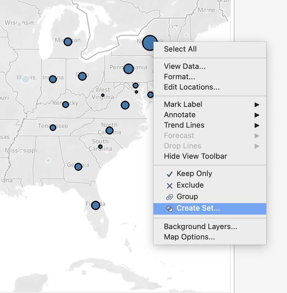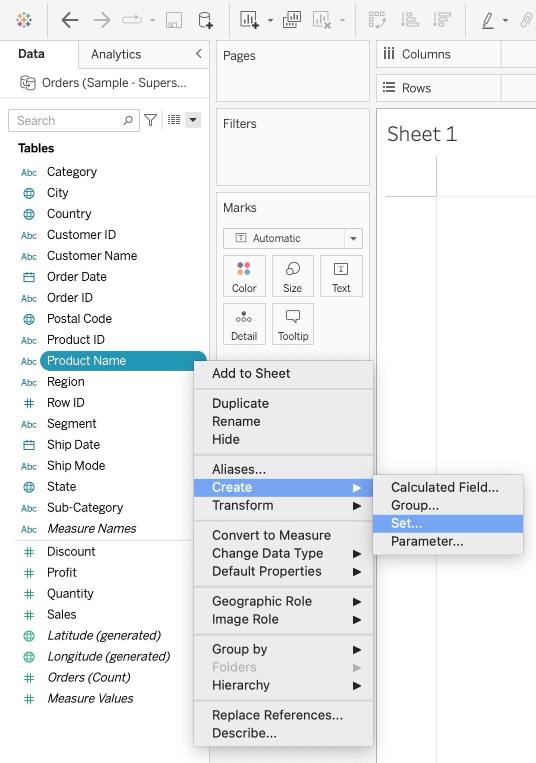 2. Click the selected area and select Create a Set.