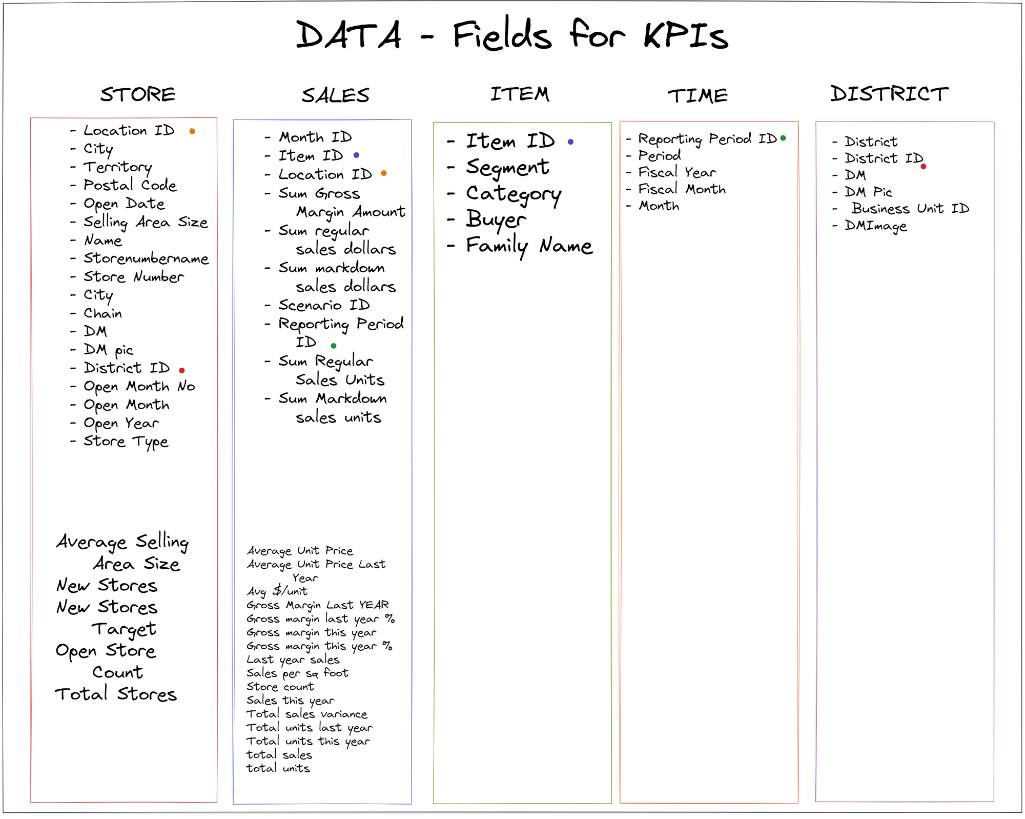 My planning started with getting some inspiration for KPI dashboards on Tableau Public, and getting an idea of what KPIs I would need for my dashboard. The data I chose to use was on retail analysis, so I had a google of important metrics for this. I then went through the data and looked at all the available fields I had, so I could start planning my dashboard.