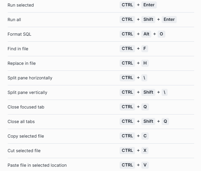 However, some of these shortcuts can be less useful or not work consistently depending on how you have snowflake open so I've compiled a curated list of my favorites that I can confirm work on Snowflake on Chrome (windows only)– apologies Mac users.