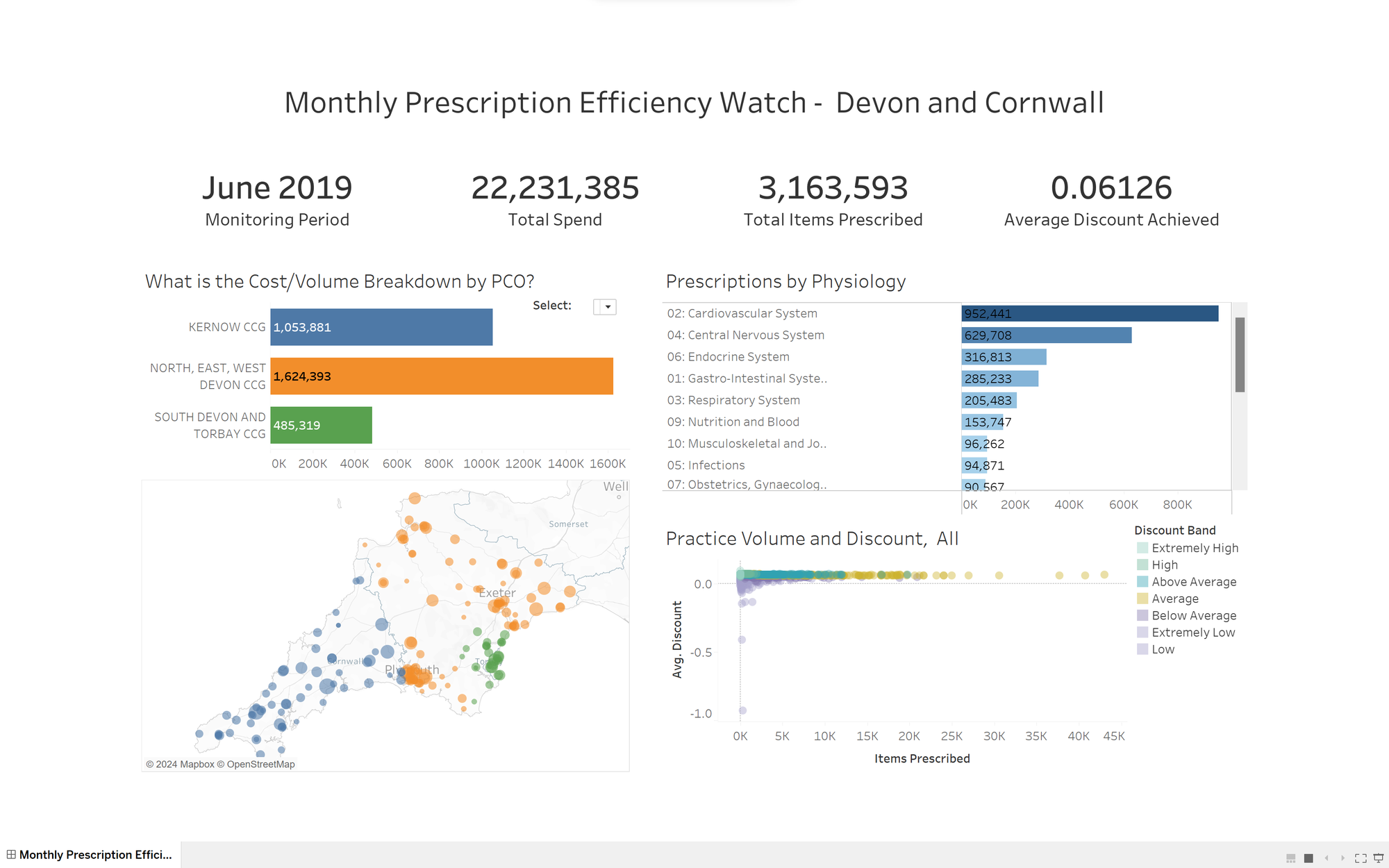 Our challenge was to make the below dashboard accessible to someone who was visually impaired. This involved getting to grips with using the narrator feature in windows (which can be enabled and disabled using ctrl+windows+enter).