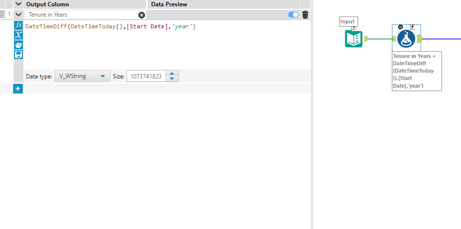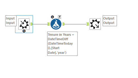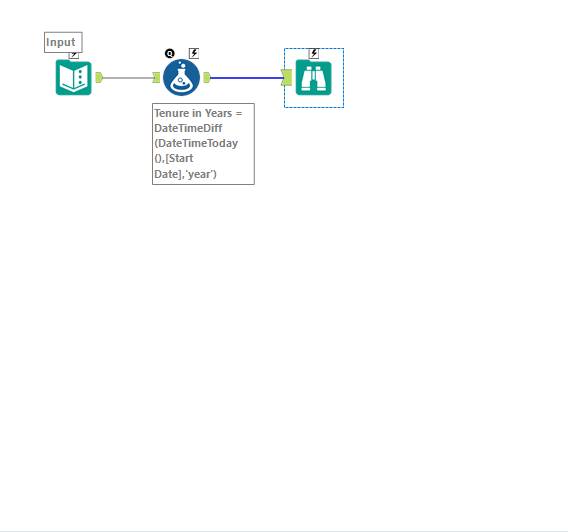 - Add a Formula tool to the left of the Text Input tool. Create a column called Start Date and populate it with some sample dates.