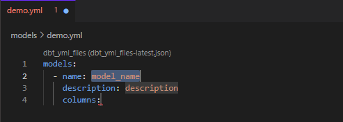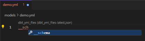 This trick isn't limited to just SQL files. Here's an example in which I fill out the basics of a YAML file using __schema: