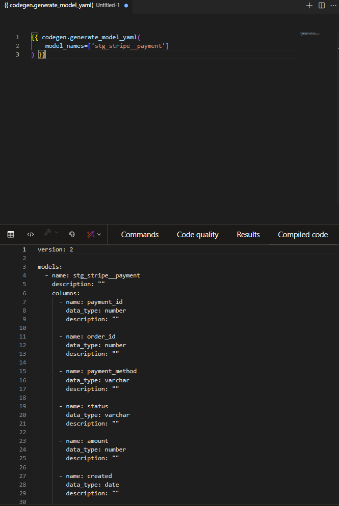 There are a few different things it can do but one example is to generate the YAML file for a model. All you need to do is copy the code from the page linked above into an empty file in dbt and fill in the model name. Then click compile and the compiled code shown will contain the code you need for that model's YAML file.