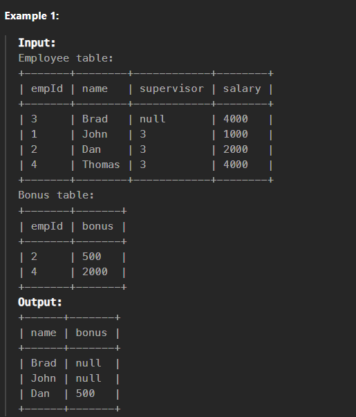 - If no match exists, the bonus fields come out as NULL.
