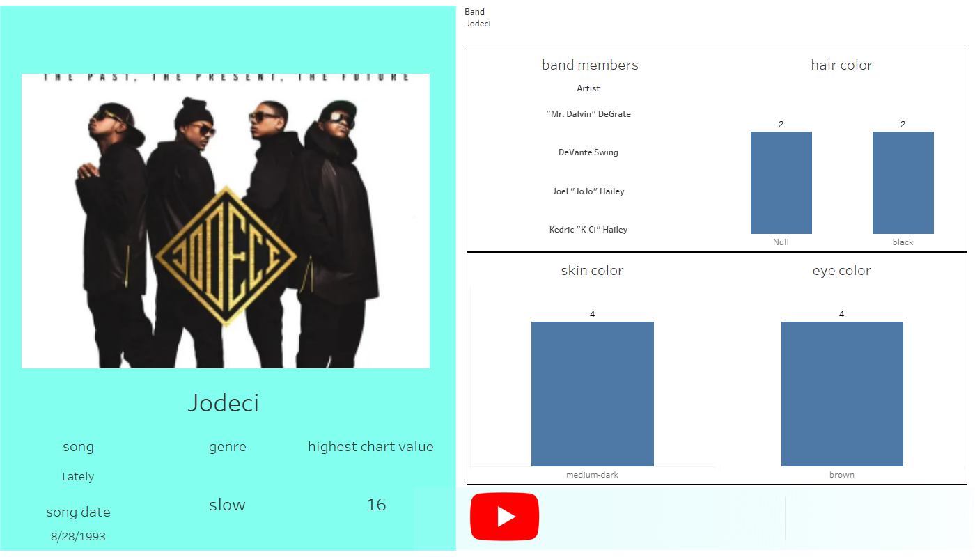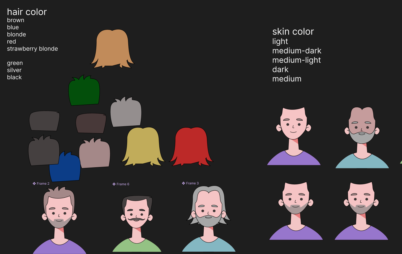 I initally wanted to create a unique shape for every band member in the dataset based off their attributes. For example Hair color, skin color, shirt color etc, I soon realized that would take too much time being over 200 artist in the dataset.