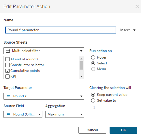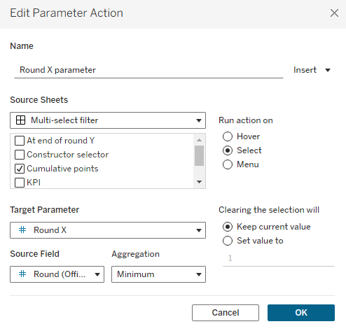 - I added a reset button to go back to include all rounds (I'll be writing a blog about this if you're interested in how to reset parameters).