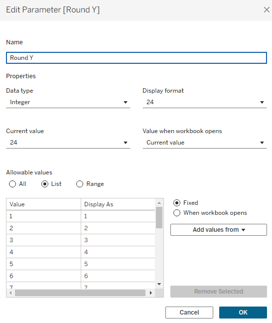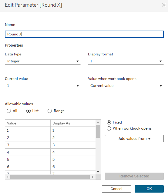 A pop-up window will appear. You can really set this up as you please but these are my preferences. The only specific thing that must be the same is using your parameter as the value.
